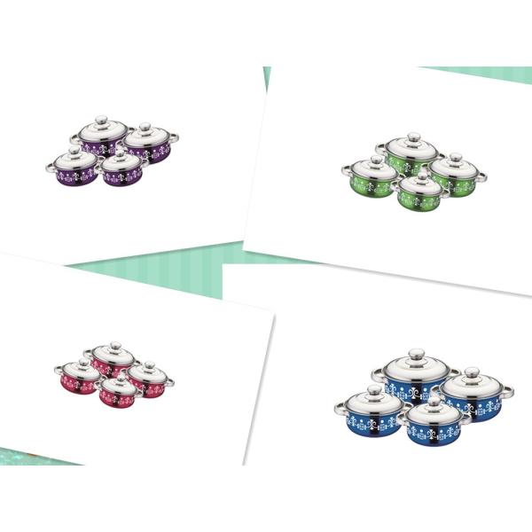 2020 hot sales 4pcs colorful cookware set & red ,blue 16cm -22cm color&flower cooking pot &stainless steel pot Images |